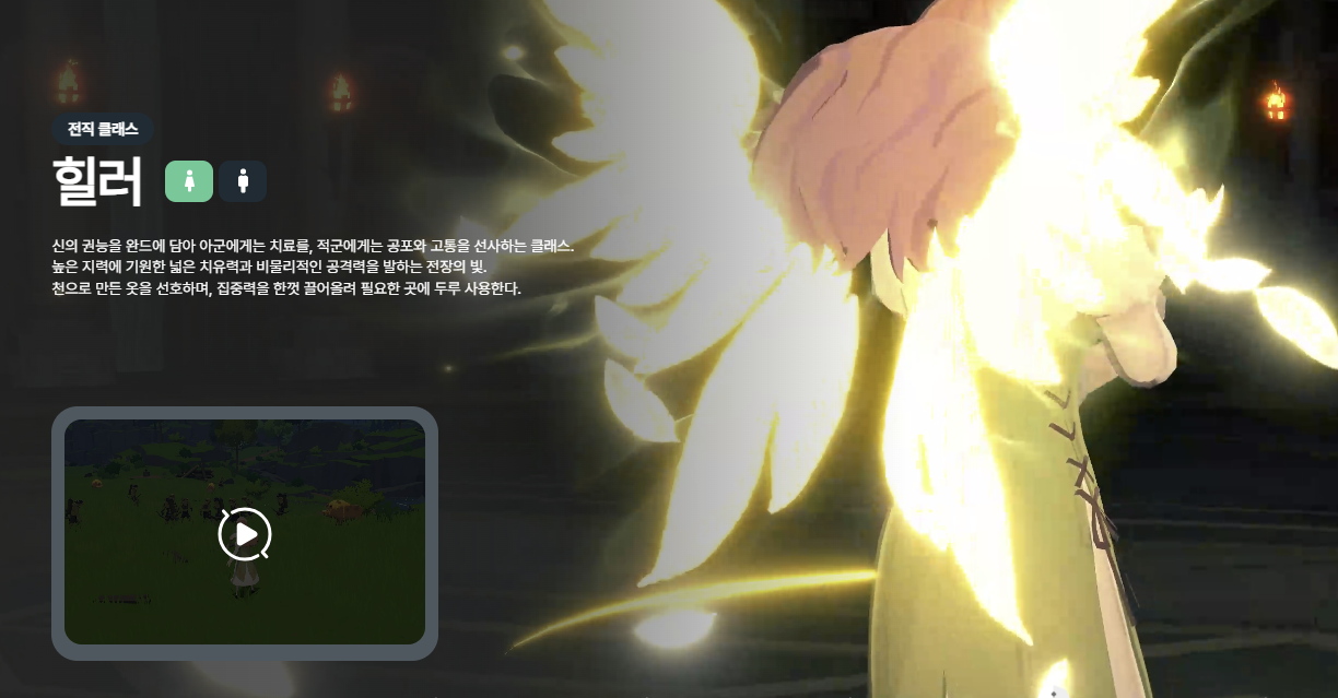 - 사제: 힐러의 하이브리드 형태. 공격과 회복을 동시에.