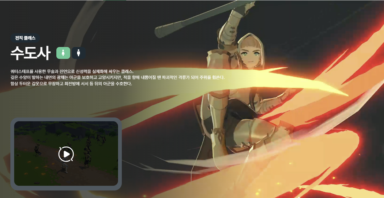 - 수도사: 물리형 힐탱. 솔플에 적합.