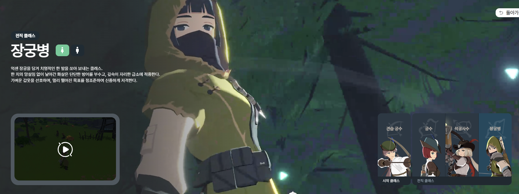 - 궁수: 민첩하고 안정적인 원거리 딜러.